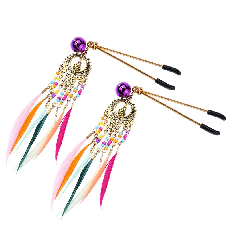 Teaser Clip With Colored Fan-Shaped Feather Sm Nipple Stimulation Punishment Tuned Sex Toy